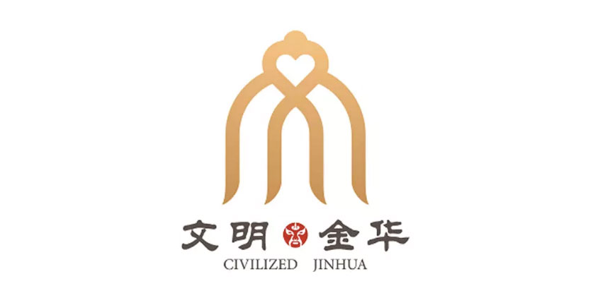 代表了金华的江河文化。 文字部分在“中国”和“金华”中心位置融入了代表金华非物质文化遗产——婺剧的红色脸谱。